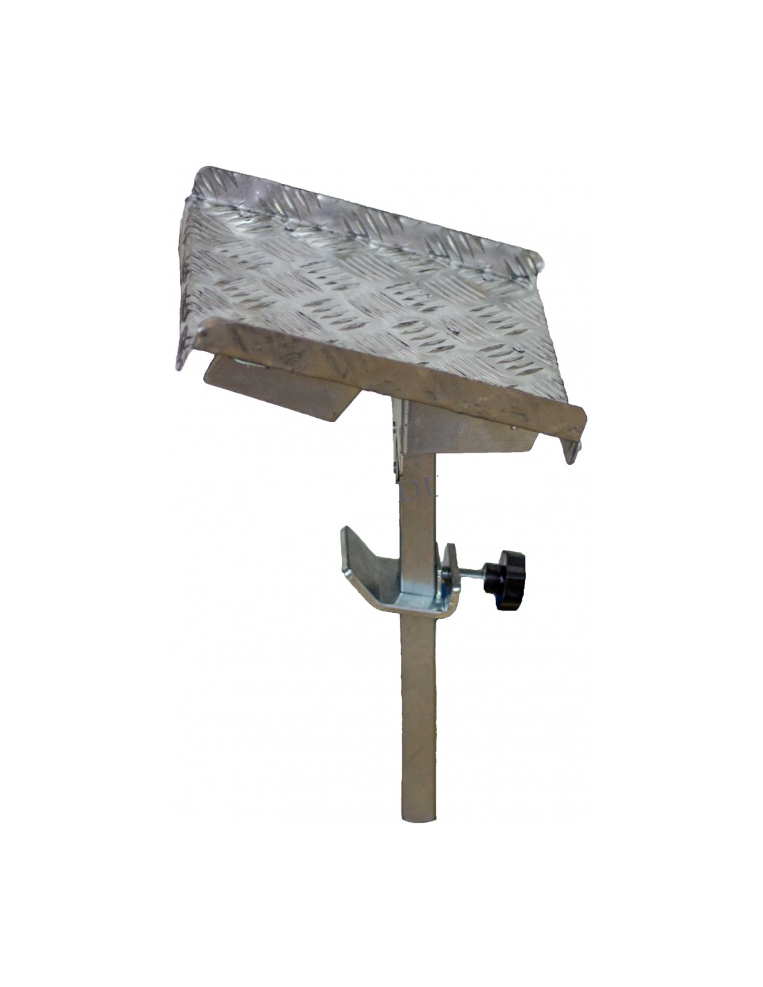 E' composta di una intelaiatura in acciaio e piattaforma in alluminio con lavorazione antiscivolo. Il bloccaggio sul piolo, per gravità, risulta facile e sicuro; agendo da perno per il collo del piede dell'operatore ne garantisce la stabilità d'appoggio.