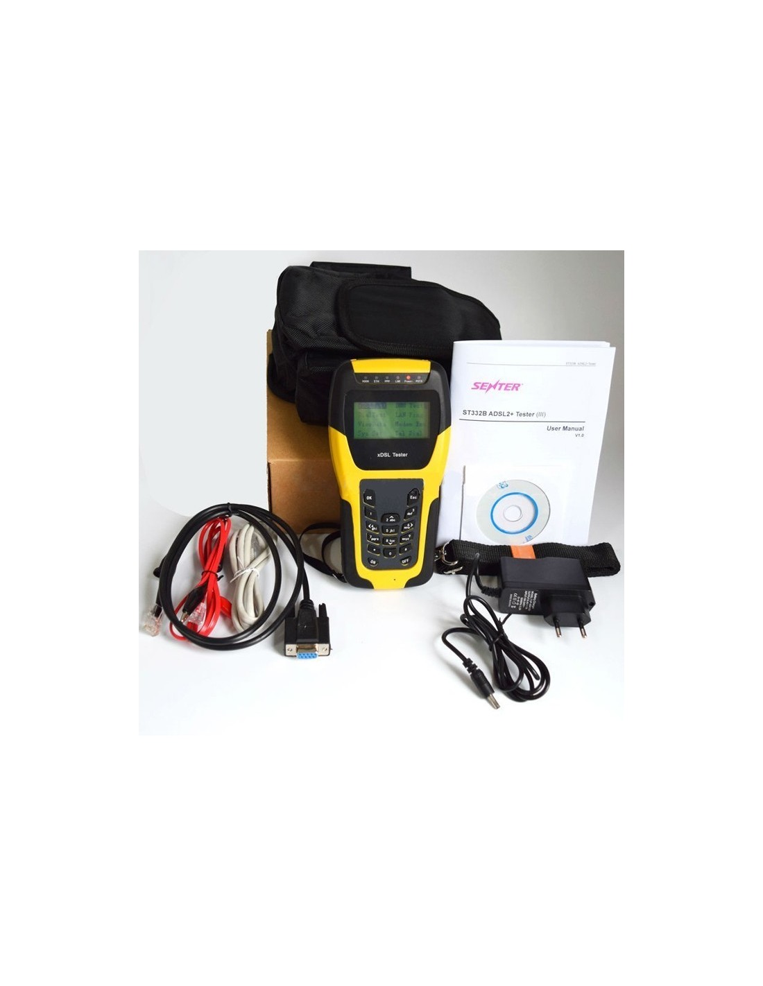 Completo di borsa per il trasporto, cavi di misura , software , batterie e alimentatore, manuale in italiano.