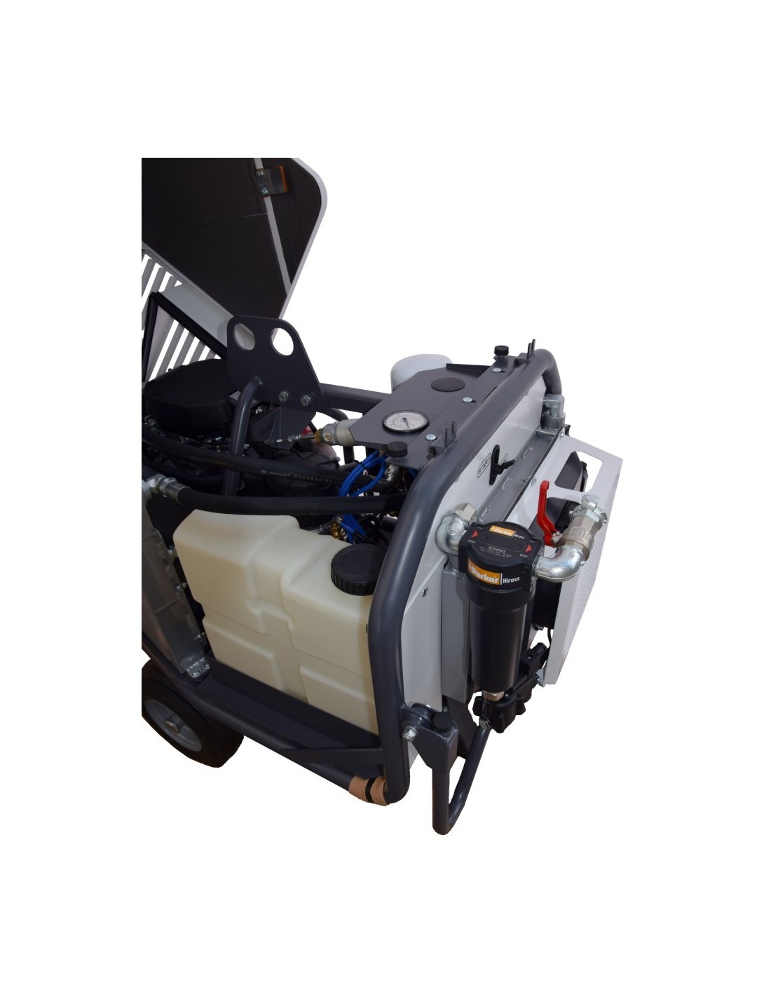 Avviamento intuitivo / Contaore integrato / Manometro aria in mandata.